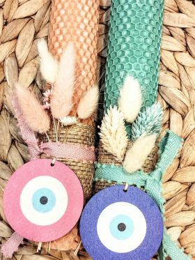- Λαμπάδα μελισσοκέρι χρωματιστό-Μάτι μπλε-Χρώμα βεραμάν €14.50