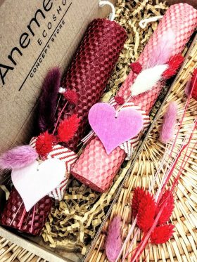 - “Καρδιά”-Λαμπάδα κοντή μελισσοκέρι χρωματιστό με αποξηραμένα φυσικά άνθη-Χρώμα μπορντό €14.50