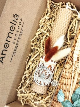 - “Ποδήλατο”-Λαμπάδα μελισσοκέρι χρωματιστό με αποξηραμένα φυσικά άνθη-Χρώμα μόκα €14.50