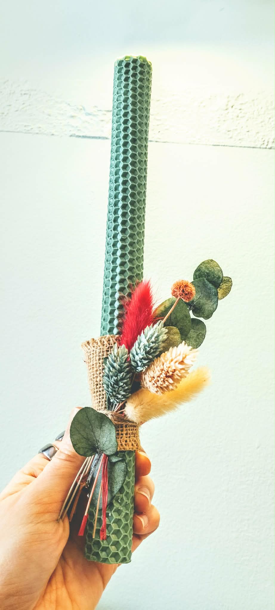 Λαμπάδα μελισσοκέρι χρωματιστό με αποξηραμένα φυσικά άνθη-Χρώμα βεραμάν