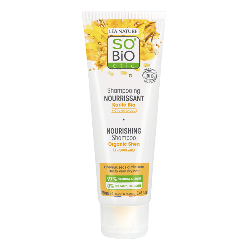 Βιολογικό Σαμπουάν Θρέψης Βιολογικό Βούτυρο Καριτέ + Κερί Jojoba Για Ξηρά έως Πολύ Ξηρά Μαλλιά 250ml – SO’BIO ÉTIC |