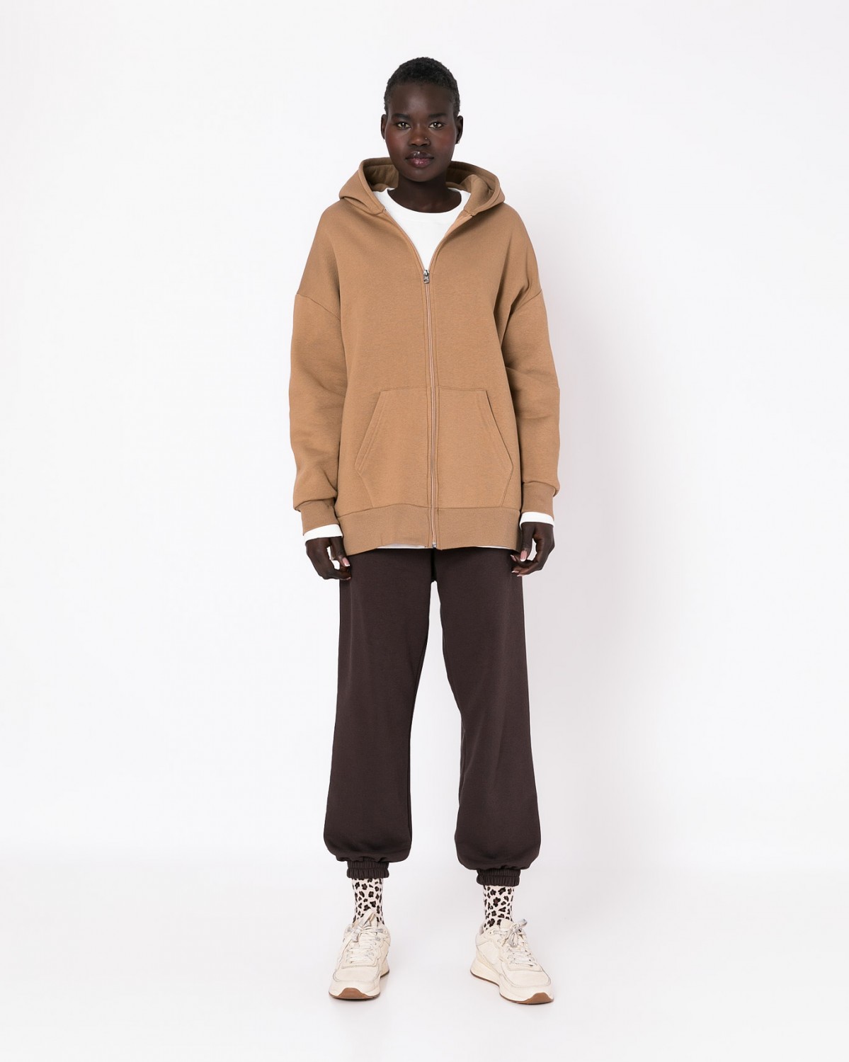 Oversized unisex ζακέτα φούτερ σε χρώμα σκούρο μπεζ/sand.