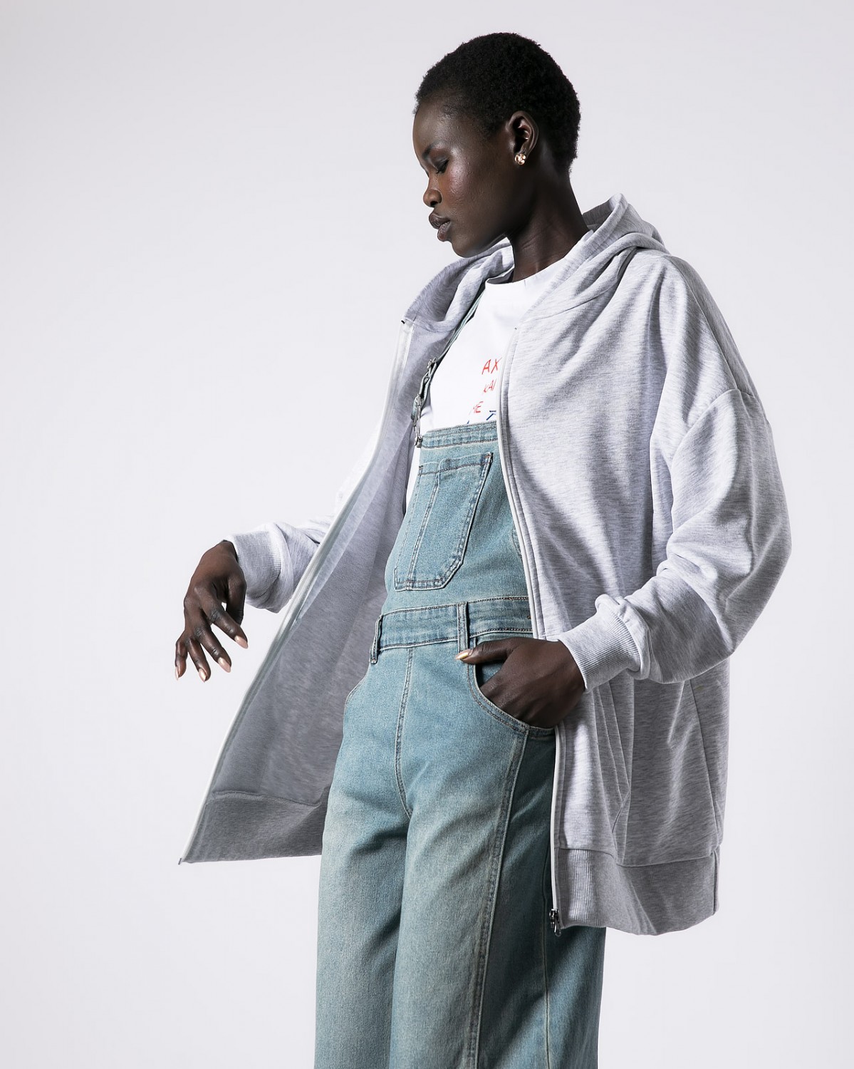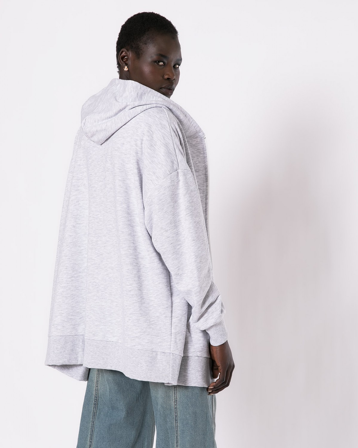 Ζακέτα oversized αχνούδιαστη λεπτή με κουκούλα, χρώμα γκρι ανοιχτό. One size.