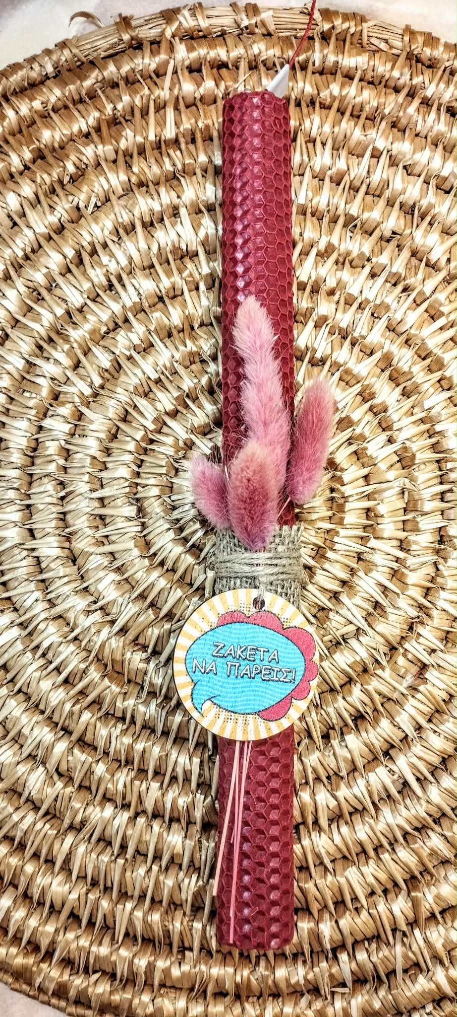 Λαμπάδα μελισσοκέρι χρωματιστό-“Ζακέτα να πάρεις”- Χρώμα σάπιο μήλο