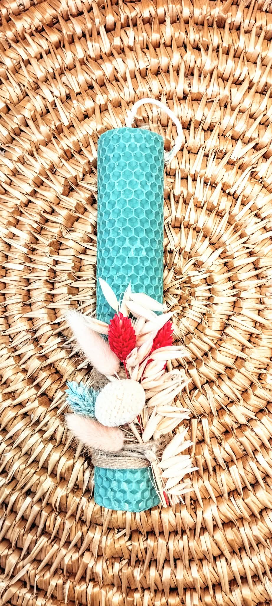 Λαμπάδα μελισσοκέρι χρωματιστό με αποξηραμένα φυσικά άνθη-Χρώμα βεραμάν