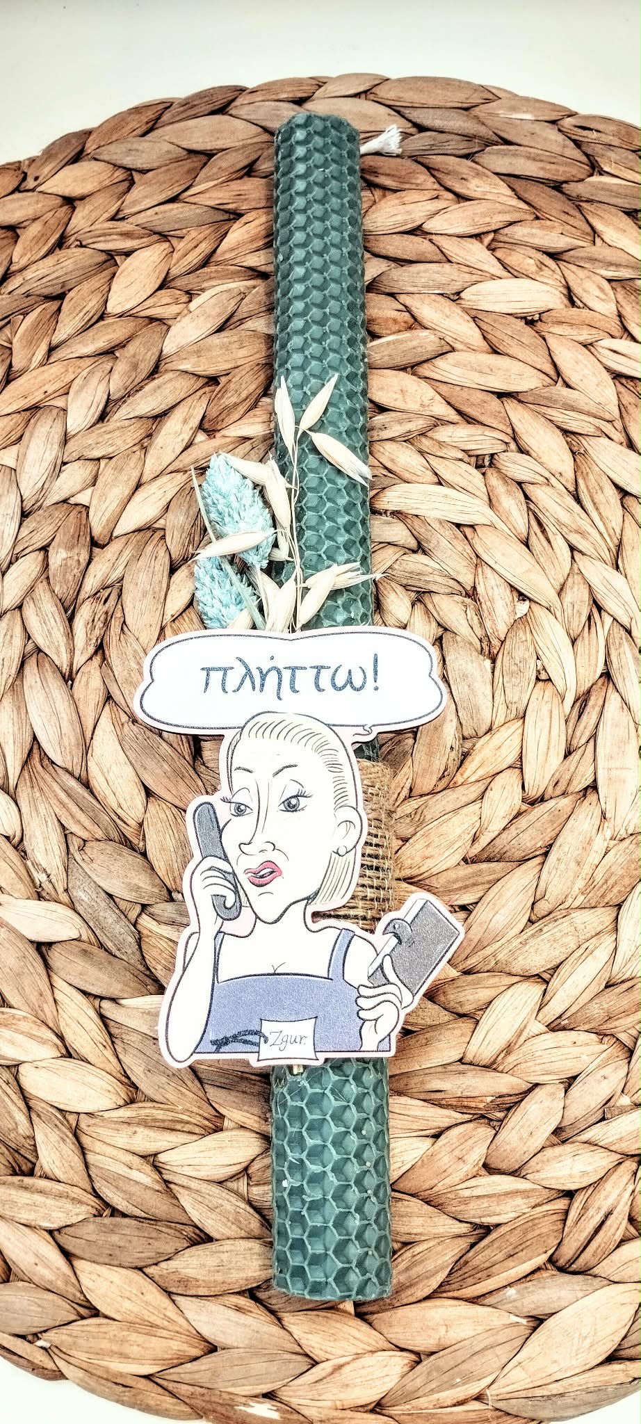 Λαμπάδα μελισσοκέρι-Fun message “Πλήτω”-Χρώμα χακί