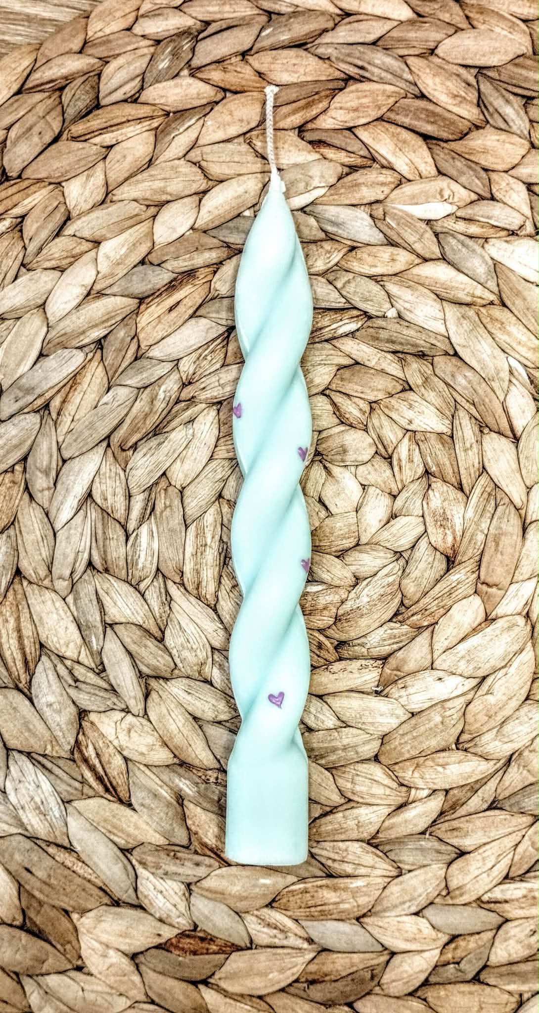 Λαμπάδα στριφτή από φυτικό κερί ζωγραφισμένες mini καρδιές-Χρώμα βεραμάν