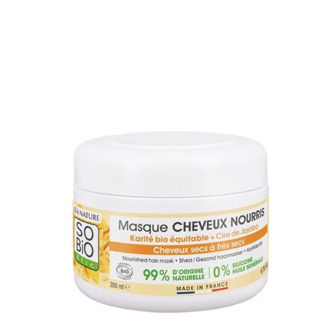 Βιολογική μάσκα μαλλιών με βιολογικό βούτυρο καριτέ δίκαιου εμπορίου και κερί jojoba προσφέρει εντατική θρέψη, λάμψη και μεταξένια απαλότητα στα ξηρά έως πολύ ξηρά μαλλιά.