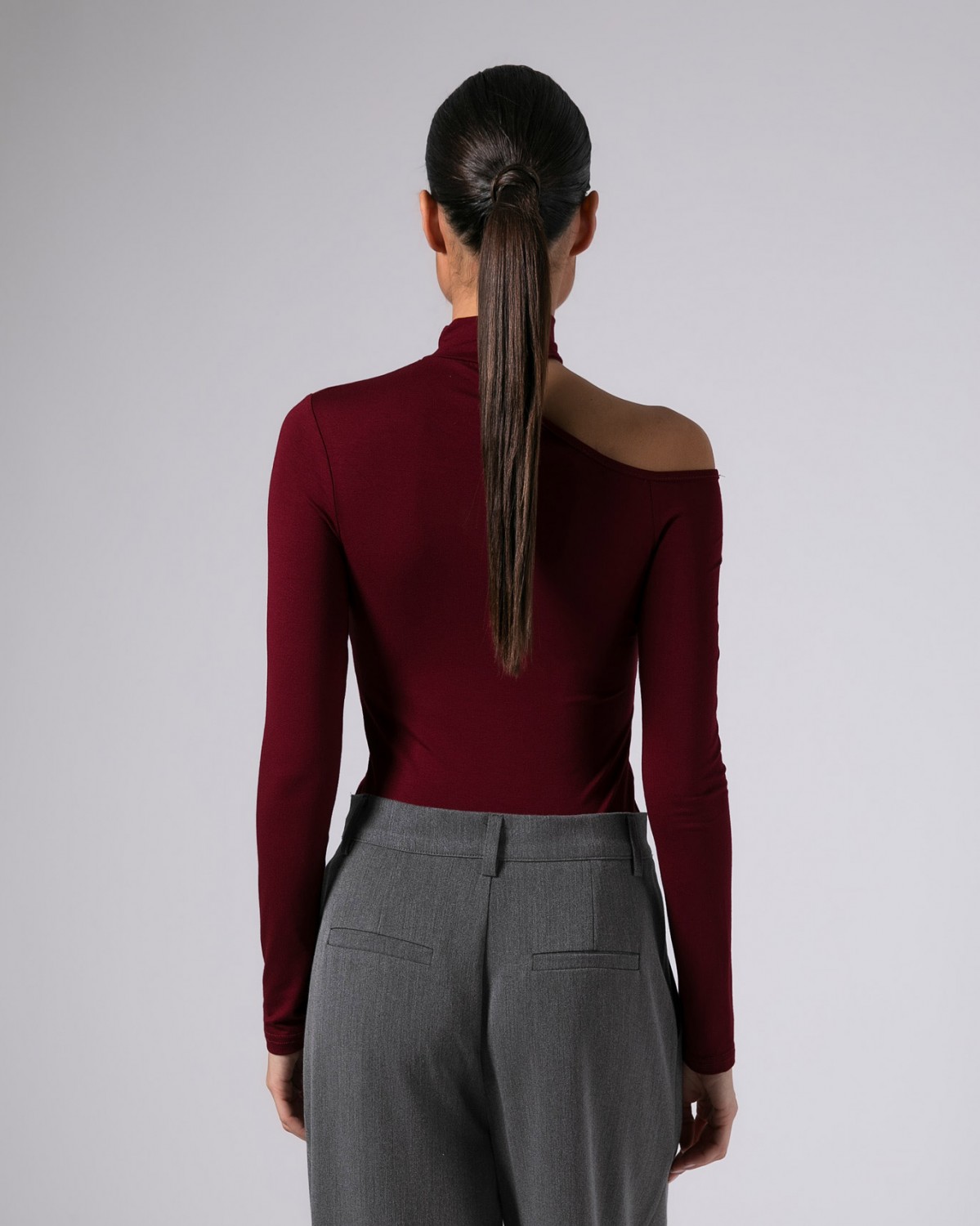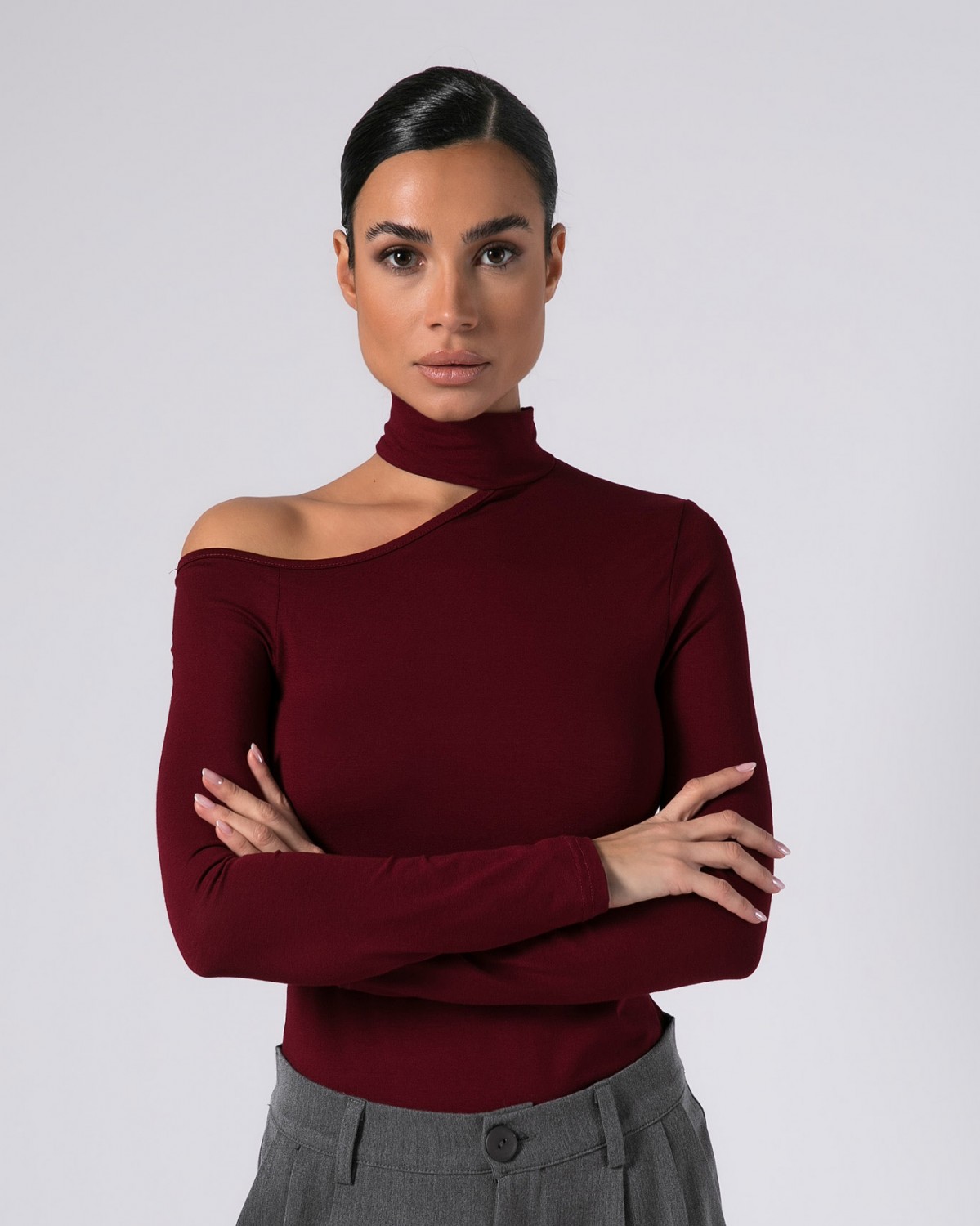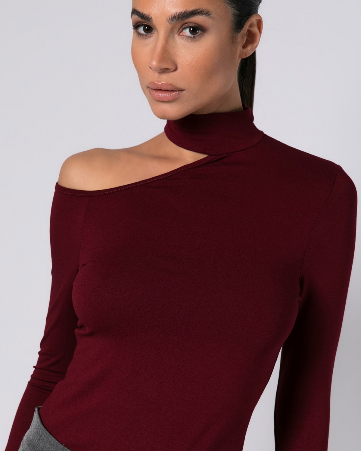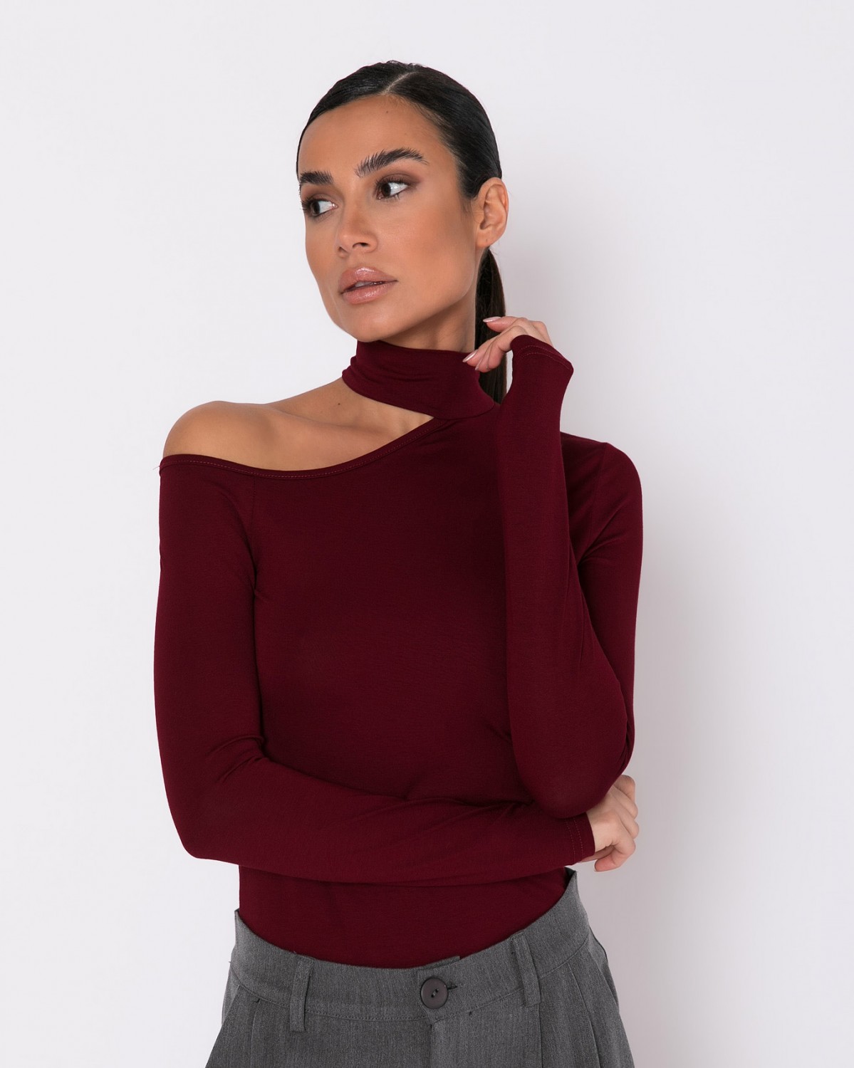 Μπλούζα μακρυμάνικη, με άνοιγμα στον ώμο, viscose. Χρώμα μπορντό.