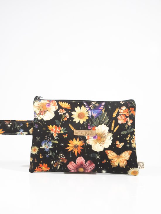 Έχει έναν χώρο, κλείνει με φερμουάρ, είναι φοδραρισμένο και έχει ένα λουράκι για κρέμασμα ή για πέρασμα στον καρπό σας!