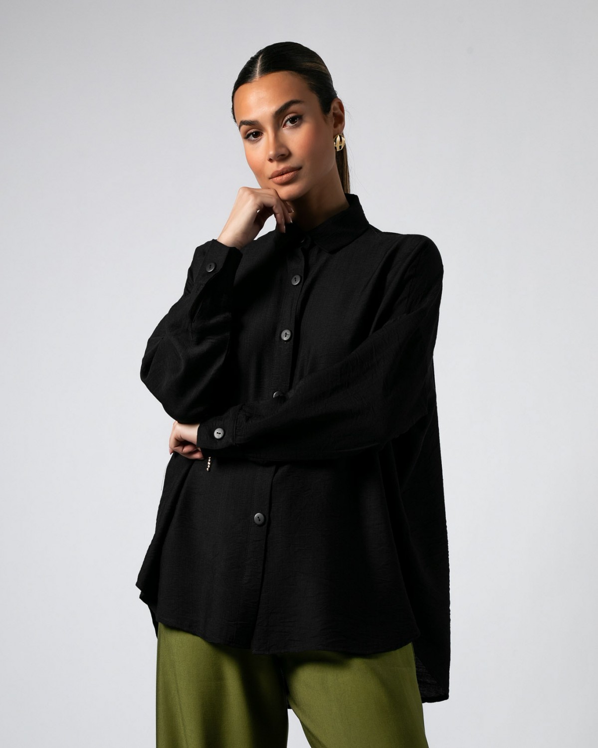 One size Πουκάμισο rayon, απαλό ύφασμα. Χρώμα μαύρο. Το σχέδιο που δεν πρέπει να λείπει από την ντουλάπα σας.