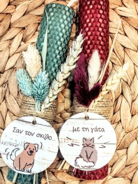 - Λαμπάδες σε σετ διακόσμηση ξύλινη ετικέτα “Σ’αγαπώ-Μ’αγαπάς”