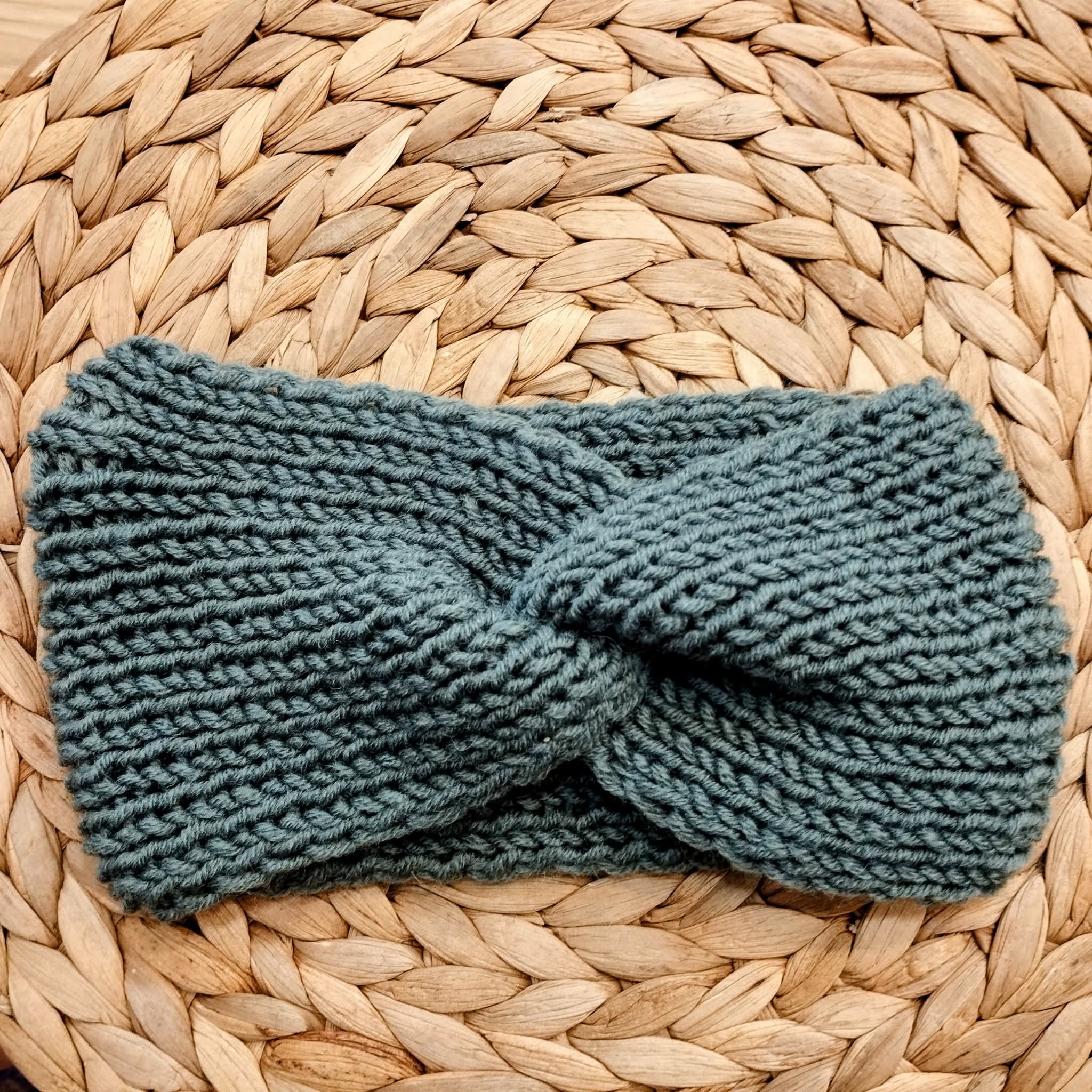 Πλεκτή χειροποίητη κορδέλα κεφαλιού. Ζεστό, μαλακό νήμα. Χρώμα πετρολ.