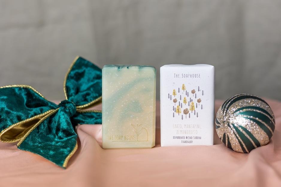 Χειροποίητο σαπούνι, χεριών & σώματος με γιορτινό άρωμα από αιθέρια έλαια έλατου, μανταρινιού & λεμονόχορτου.