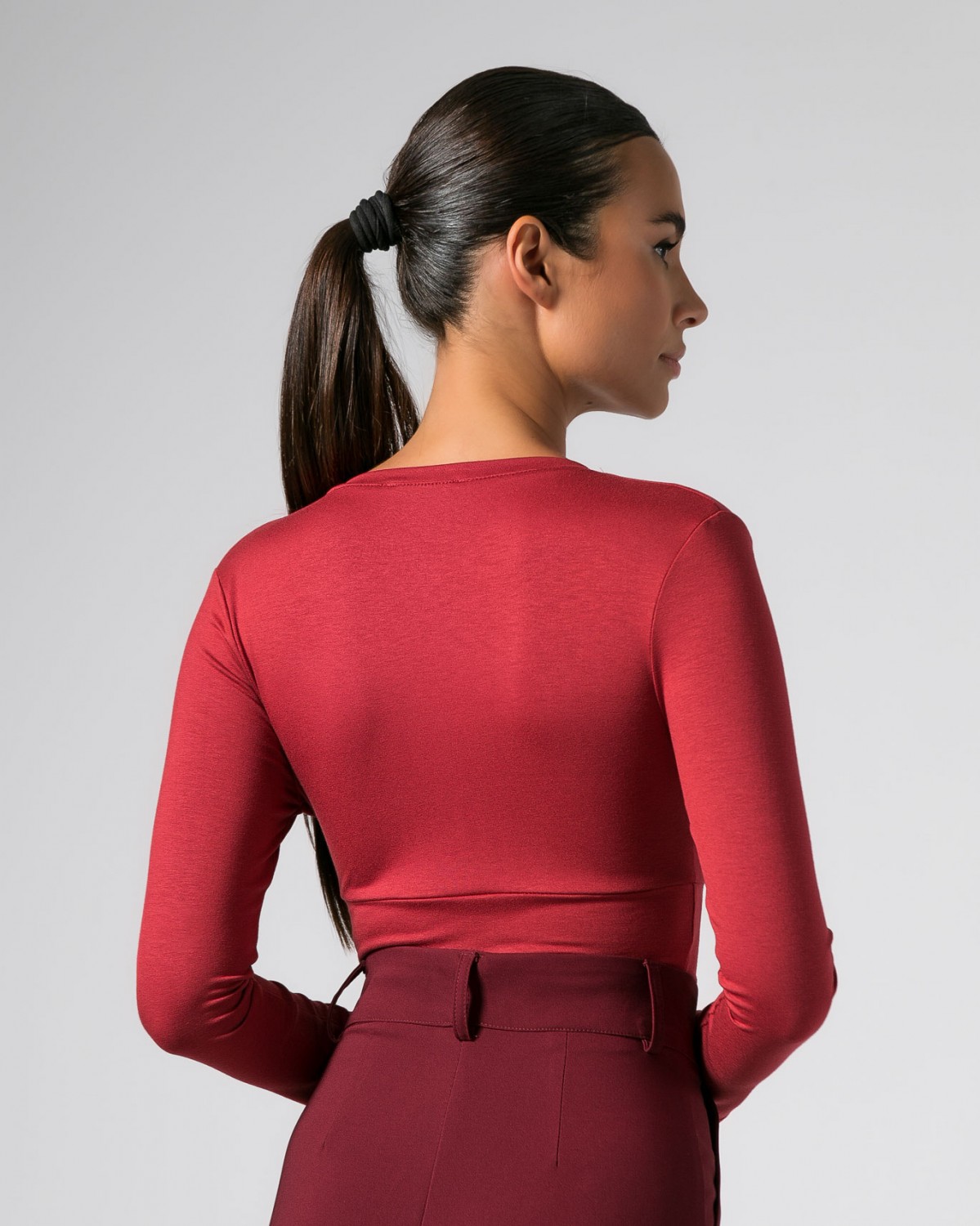 Crop top μπλούζα μακρυμάνικη κρουαζέ-Κεραμιδί