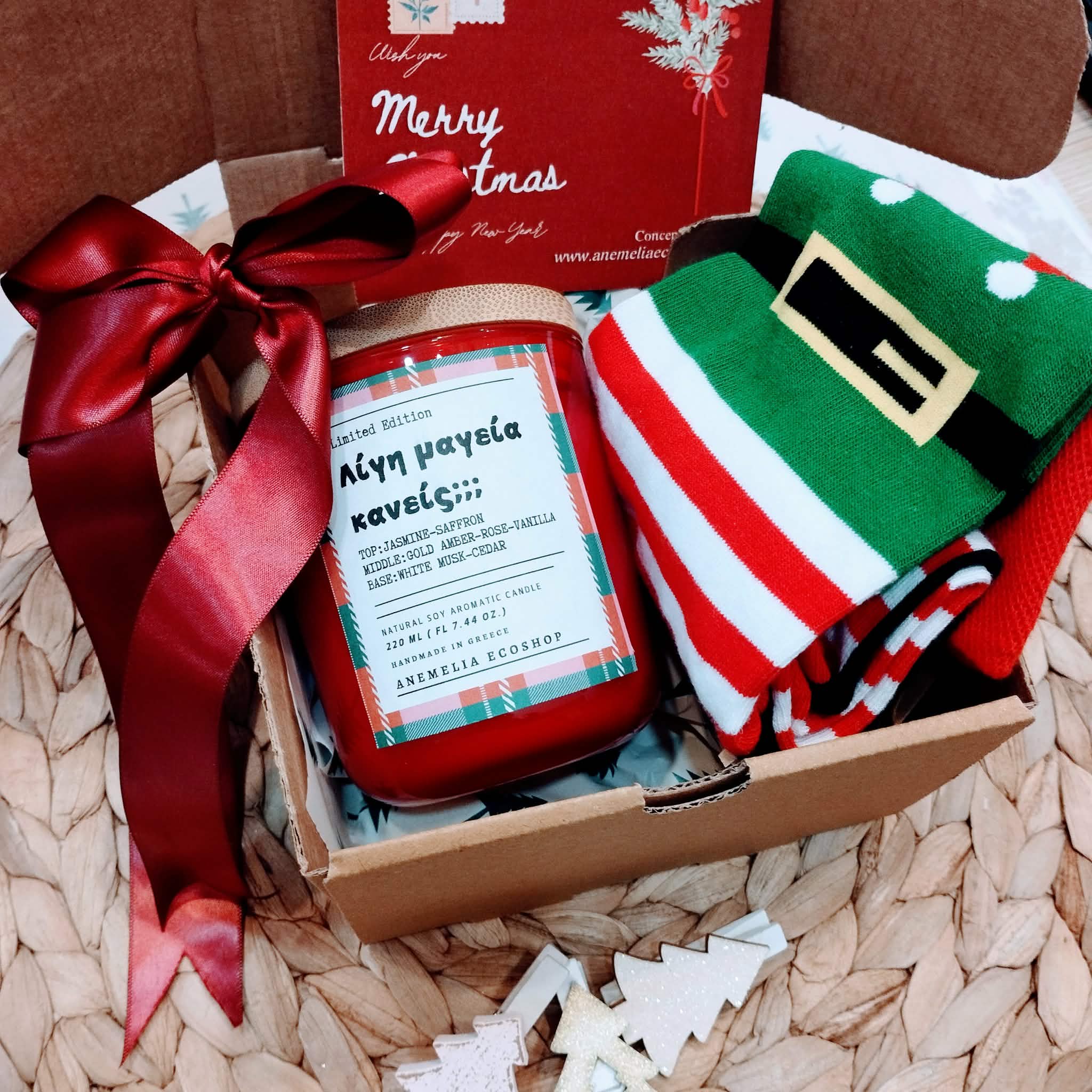 –Χειροποίητο Κερί σόγιας “Λίγη μαγεία κανείς;;;” με νότες από Γιασεμί, Σαφράν, Χρυσό κεχριμπάρι, Τριαντάφυλλο, Βανίλια, White musk, Κέδρο. Άρωμα που θα μαγέψει και θα σας μεταφέρει στο εορταστικό κλίμα των γιορτών!