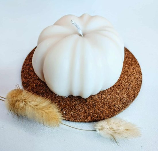 100% χειροποίητο αρωματικό κερι σόγιας με βαμβακερό φιτίλι σε σχήμα κολοκύθας και άρωμα Pumpkin Spice.